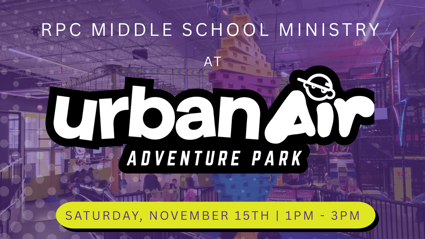 RPC Middle School Ministry is heading to Urban Air on Saturday, November 15th from 1pm - 3pm.